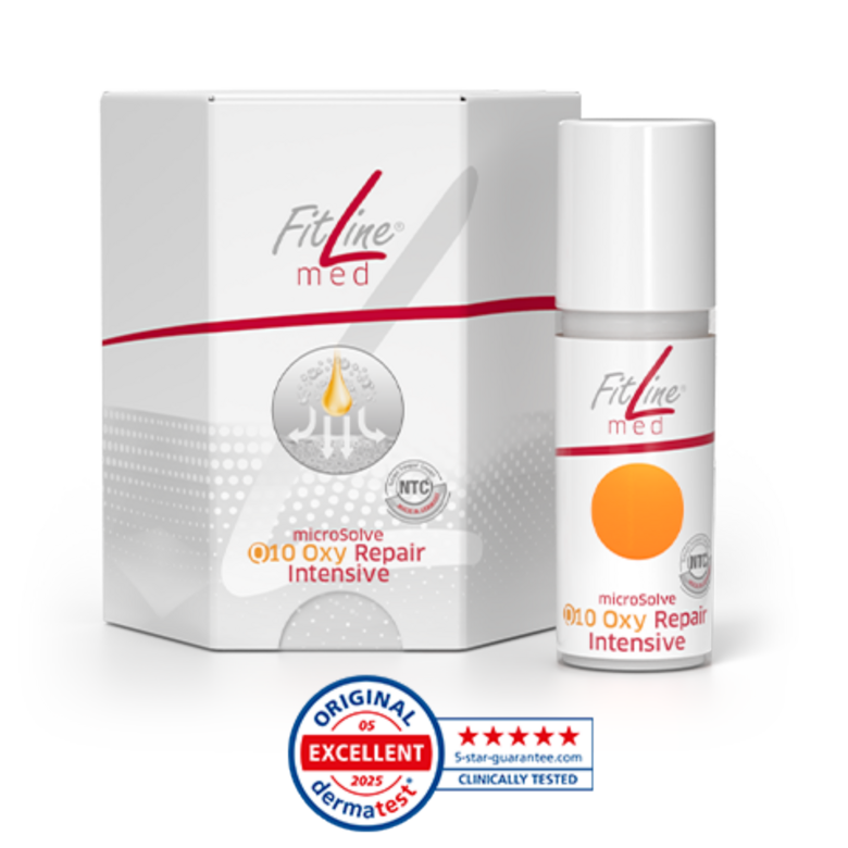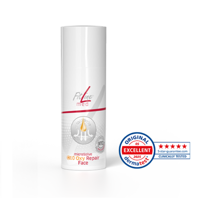FitLine Med MicroSolve Q10 Oxy Repair Face 24 stundu krēms jutīgas, kairinātas, sausas, problemātiskas sejas ādas kopšanai. Novatoriskā microSolve® Q10 un molekulārā skābekļa kombinācija palīdz atbalstīt ādas atjaunošanos un nomierināšanu, kā arī samazina apsārtumu un niezi. Ar vitamīnu E, skābekli, koenzīmu Q10 un jojobas eļļu. Nesatur krāsvielas un smaržvielas.