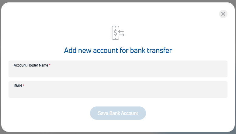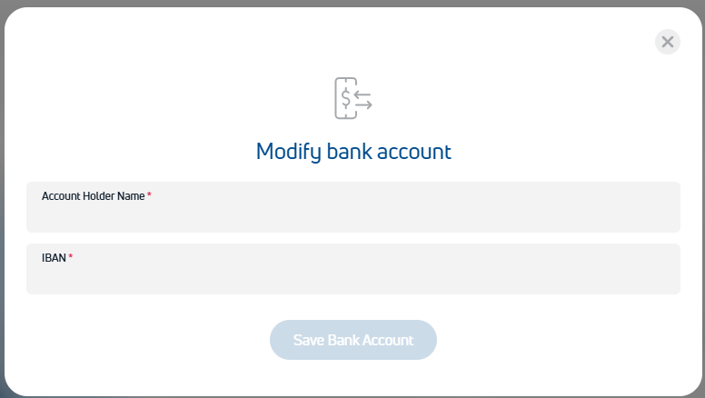 Iznirstošajā lodziņā ievadiet nepieciešamo informāciju un, ja ievadītais IBAN būs pareizs, tad aktivizēsies poga "Saglabāt Bankas Kontu" un varēsiet to saglabāt.